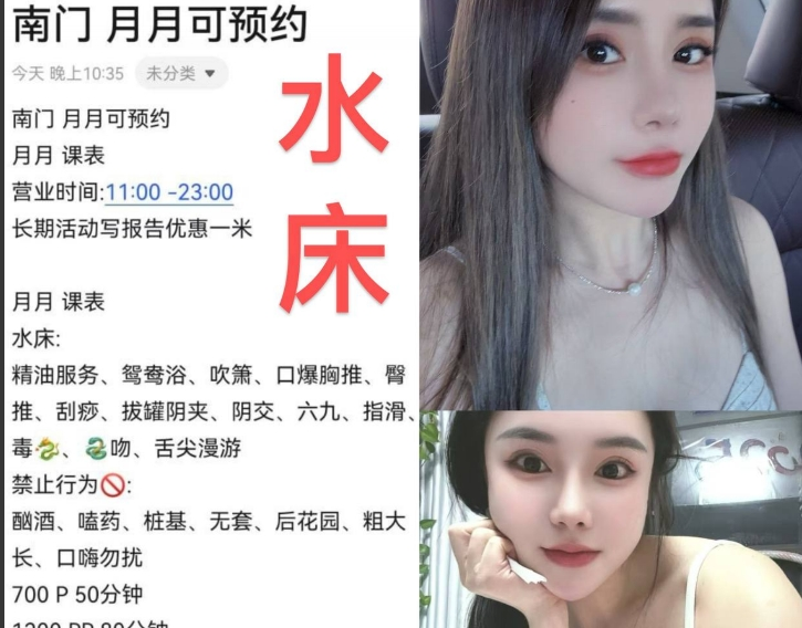 这周终于来心心念念的成都出差,看到水床从未体验过一直很好奇,遂找了月月,进门看见一个穿着黑丝睡裙的 ...
